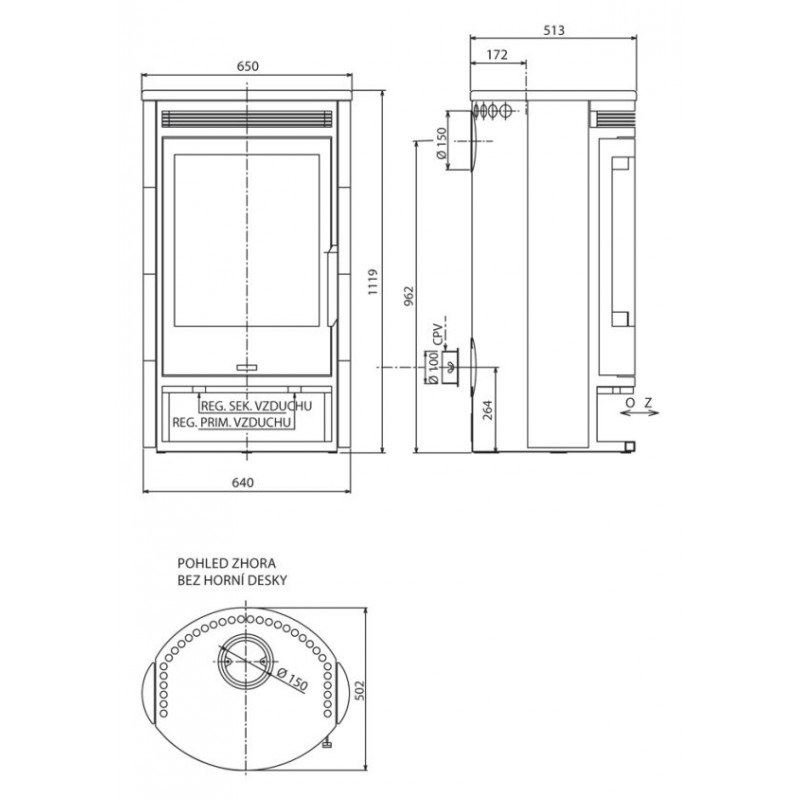 Vzdialenosť osi horného dymovodu (mm): 172