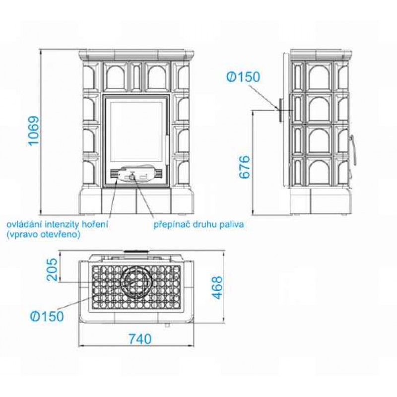 Vzdialenosť osi horného dymovodu (mm): 205
