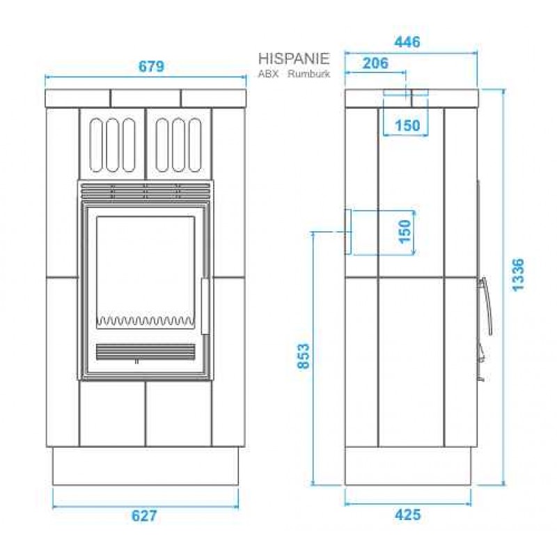 - Pro odeslání do Česka navštivte ABX Hispania L Kachlová kamna na dřevo s litinovou vložkou, picasso/tabák