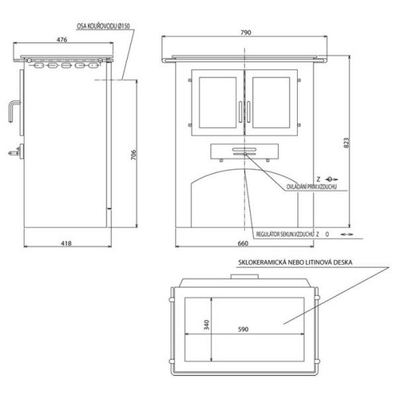 ABX Kuchynský sporák na drevo sa sklokeram. doskou bez rúry 3020 C, sivý plechKachle sú určené do chalúp a chát k vareniu a vykurovanie priestorov. Spĺňajú európske normy. Možnosť využitia iba zadného vývodu pre dymovod.