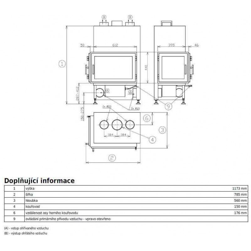 ABX London, Krbová vložka na drevo, plech, praváMenovitý výkon (kW): 14