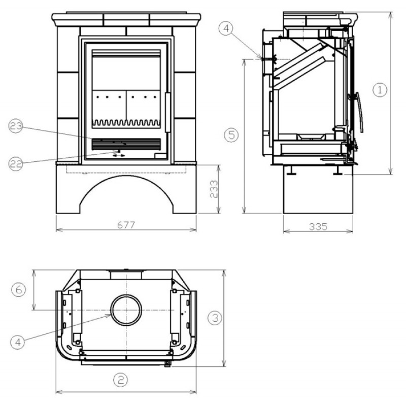 Vzdialenosť osi horného dymovodu (mm): 195