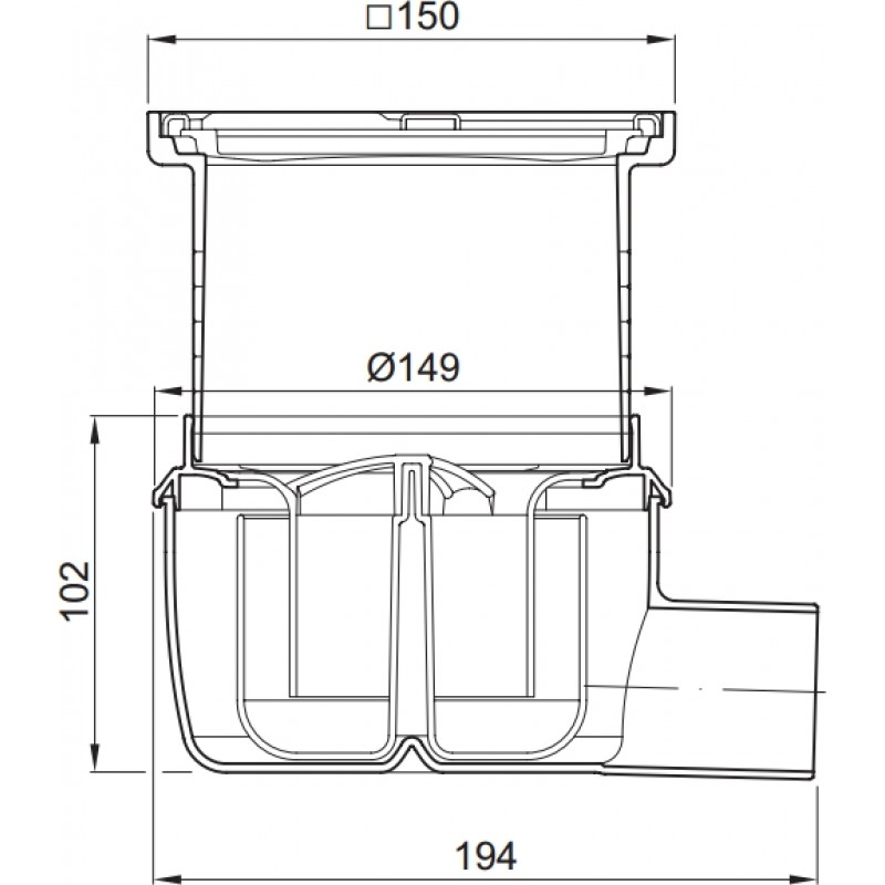 - S integrovaným tesnením na utesnenie medzery medzi telom vpuste a nástavcom s roštom