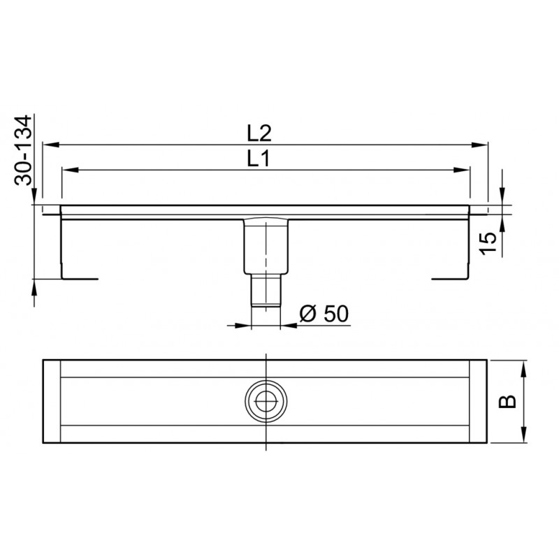 - Sprchový žľab DN 50 pre sprchový priestor, vhodný pre všetky hrdlové potrubné systémy