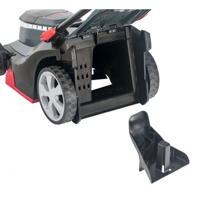 • Plastový zberný box s ukazovateľom stavu naplnenia má objem 45 l. Jednoduchú prepravu zaisťuje praktické madlo a príjemný dvojitý obojručný spínač na riadidlách zvyšuje komfort jazdy.