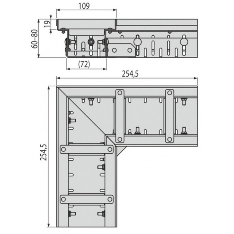 - Výškovo nastaviteľné telo žľabu 60-80 mm