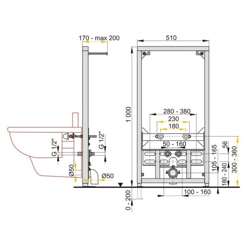 ALCAPLAST Montážny rám pre bidet - stavebná výška 1 m A105/1000* Stavebná výška - 1000 mm