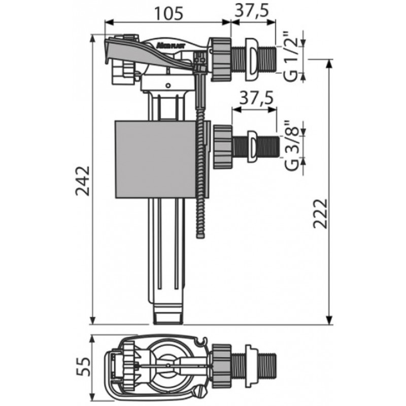 - Pro odeslání do Česka navštivte ALCAPLAST Napouštěcí ventil boční kovový závit univerzální 3/8" a 1/2" A160UNI
