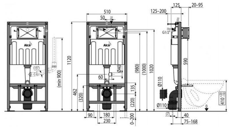 - Magyarországra történő szállítás ALCAPLAST falsík alatti WC tartály szellőző előkészítéssel száraz szereléshez AM101/1120V