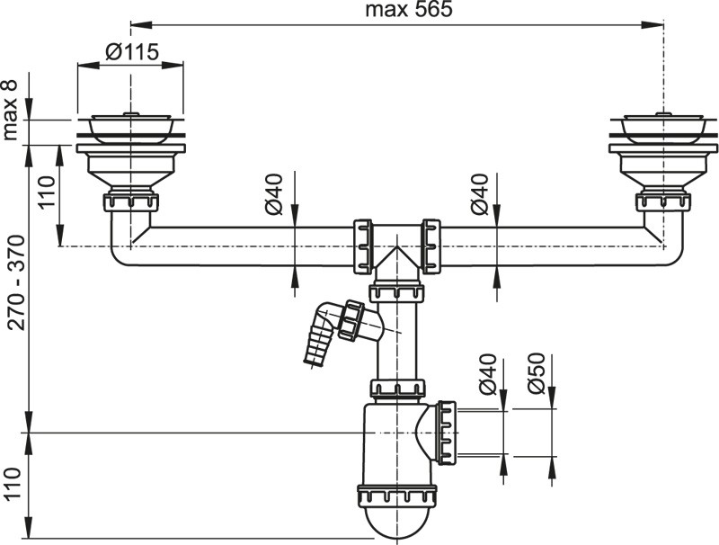 - Pro odeslání do Česka navštivte ALCAPLAST Sifon pro dvoudřez s nerezovými mřížkami průměr 115mm a přípojkou A453P