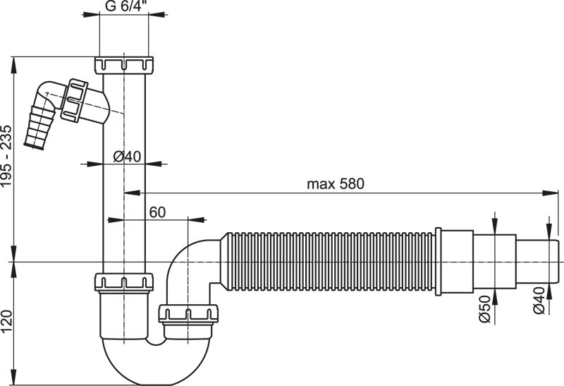 - Pro odeslání do Česka navštivte ALCAPLAST Sifon trubkový s převlečnou maticí 6/4", přípojkou a flexi hadicí A83 O50/40