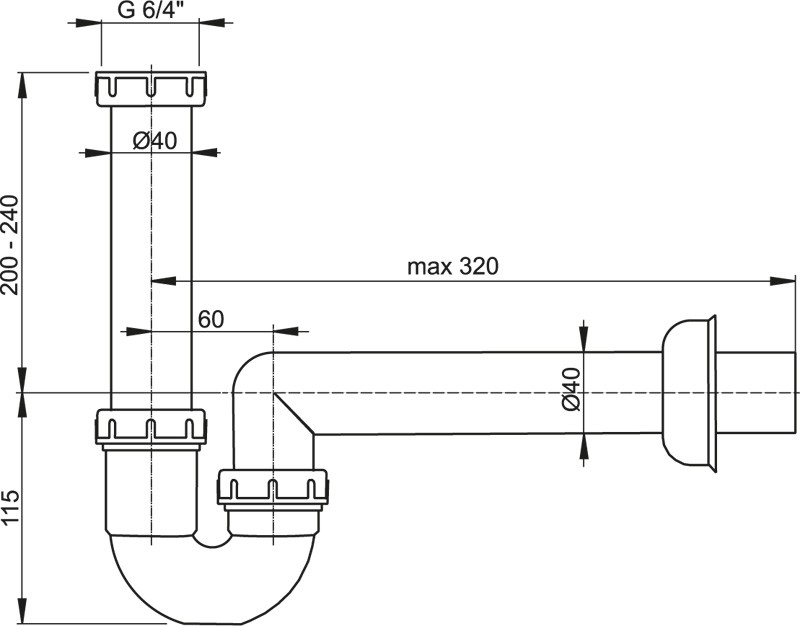 ALCAPLAST Sifón trubkový s prevlečnou maticou 6/4 "A80 O40