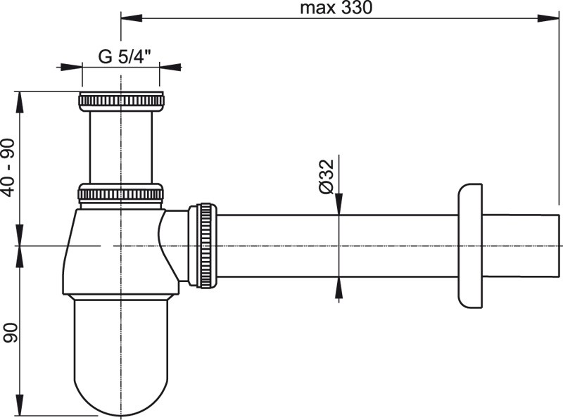 ALCAPLAST Sifón umývadlový kov priemer 32mm s prevlečnou maticou 5/4 " A431