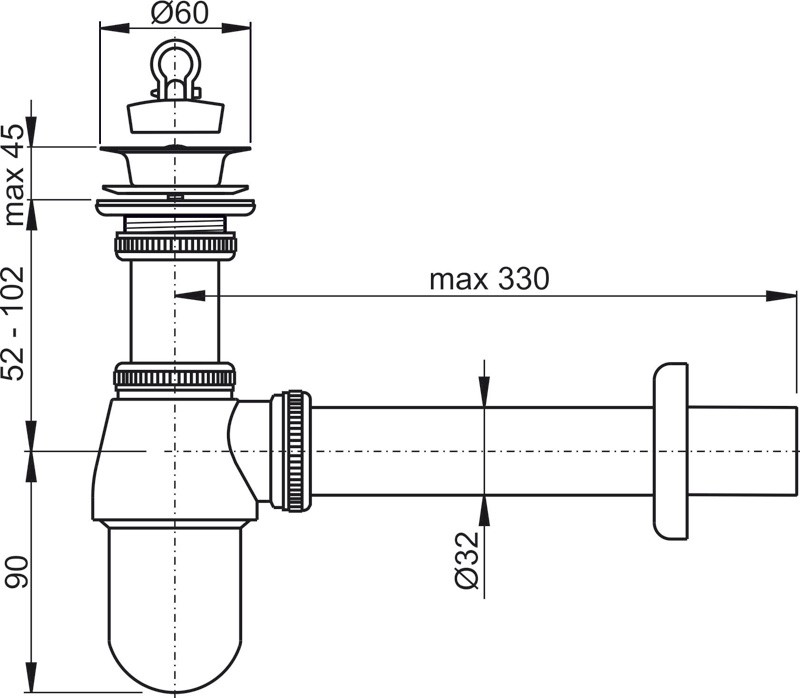 ALCAPLAST Sifón umývadlový priemer 32mm s výpusťou 5/4 "celokovový A437