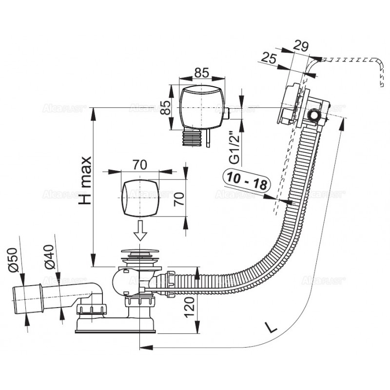 - Pro odeslání do Česka navštivte ALCAPLAST Sifon vanový automat s napouštěním přepadem pro silnostěnné vany kov A565KM3