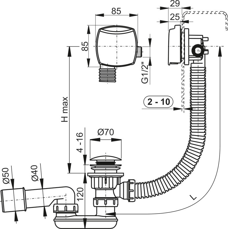 - Pro odeslání do Česka navštivte ALCAPLAST Sifon vanový click/clack s napouštěním přepadem kov/chrom 80cm A508KM80