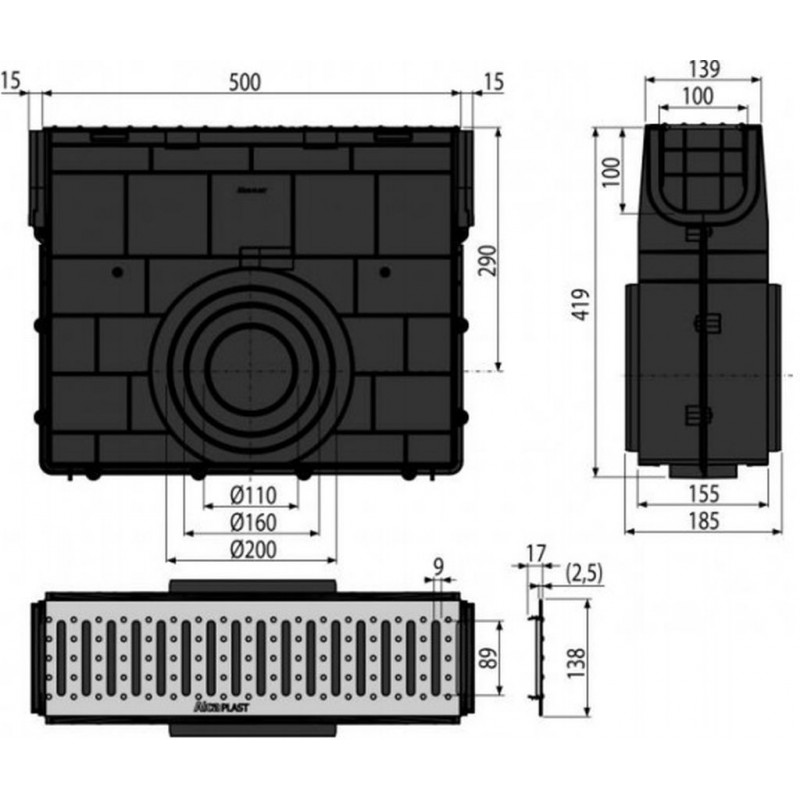 - Pro odeslání do Česka navštivte ALCAPLAST Venkovní žlabová vpust bez rámu s pozinkovaným roštem „T“ profilu A15 AVZ101R-R101S