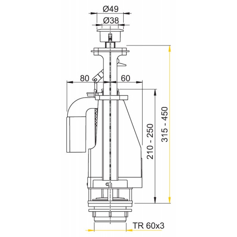 - Pro odeslání do Česka navštivte ALCAPLAST Vypouštěcí ventil s dvoutlačítkem A08