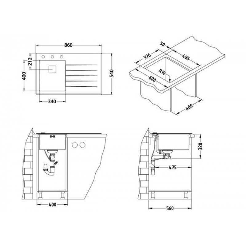 Príslušenstvo: sifón pop-up, zásobník saponátu, nerezová miska.