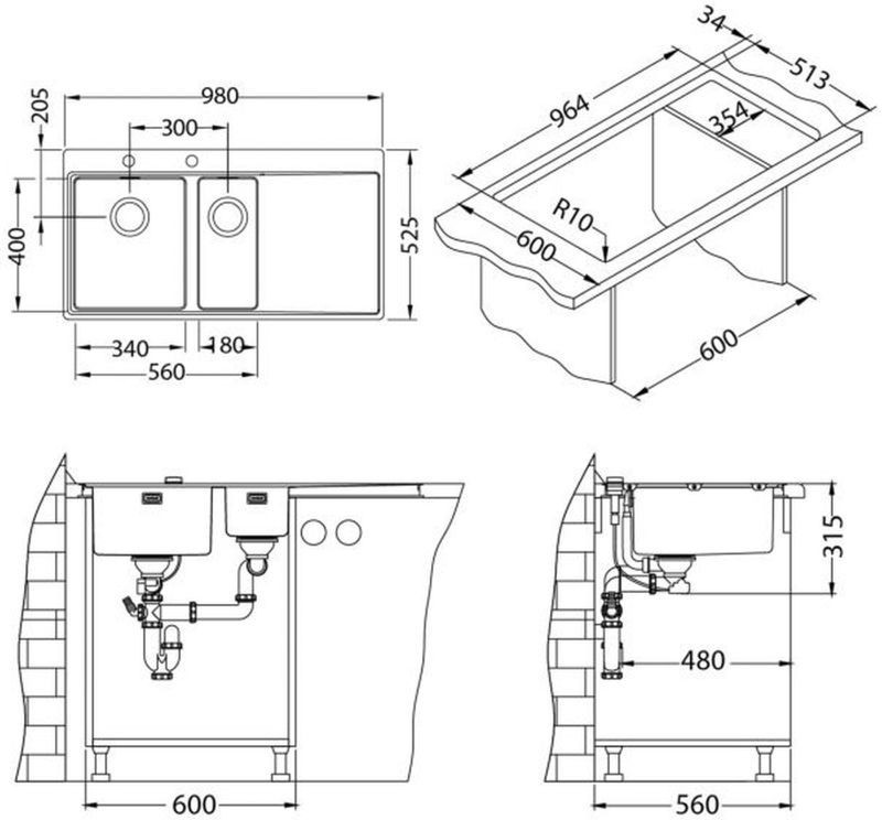 - Rozmer drezovej nádoby: 340 x 400 x 205 / 180 x 400 x 150 mm