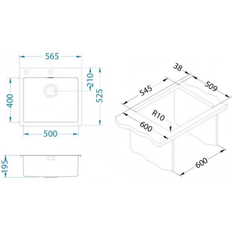 - Rozmer drezovej nádoby: 500 x 400 x 195 mm
