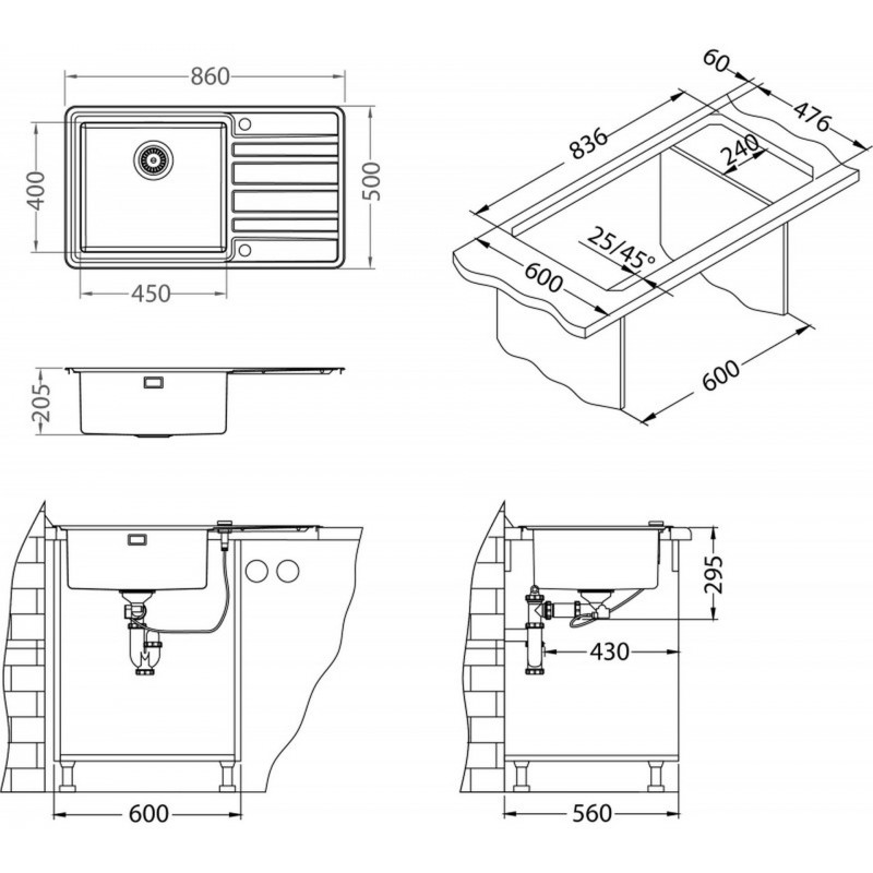 - Rozmer drezovej nádoby: 450 x 400 x 205 mm