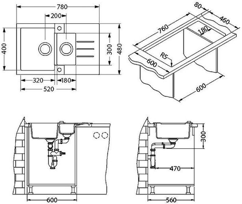 - Rozmer drezovej nádoby: 320 x 400 x 180 mm