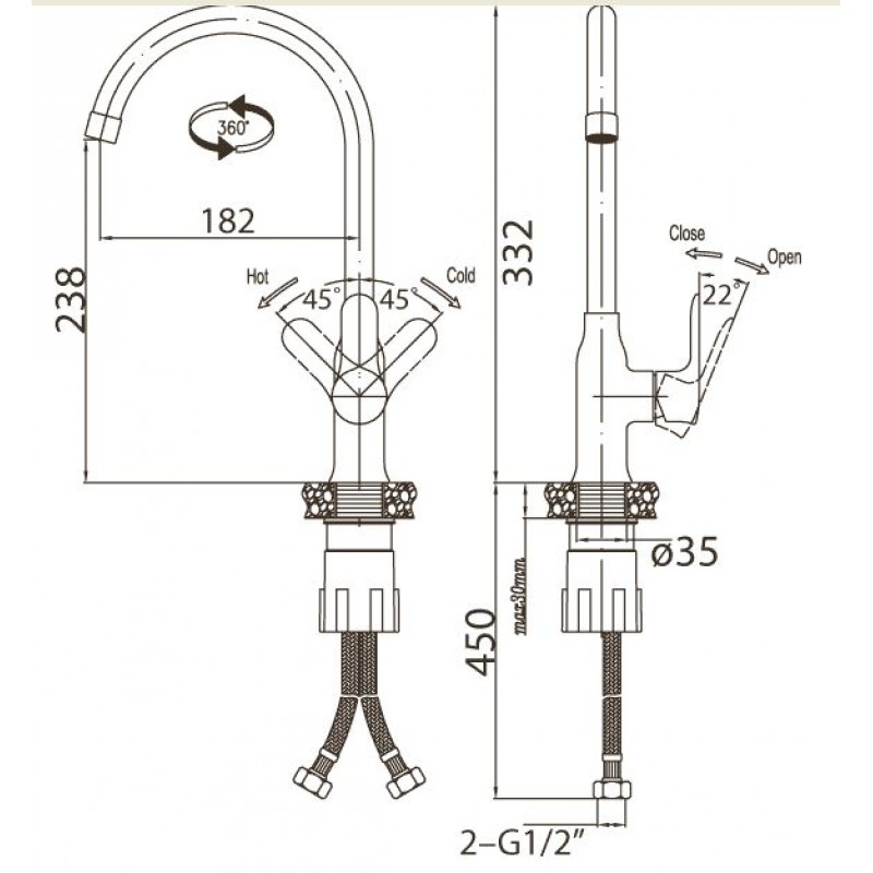 * pružné spojovacie hadice zaručujú drezové batériu jednoduchú a rýchlu montáž