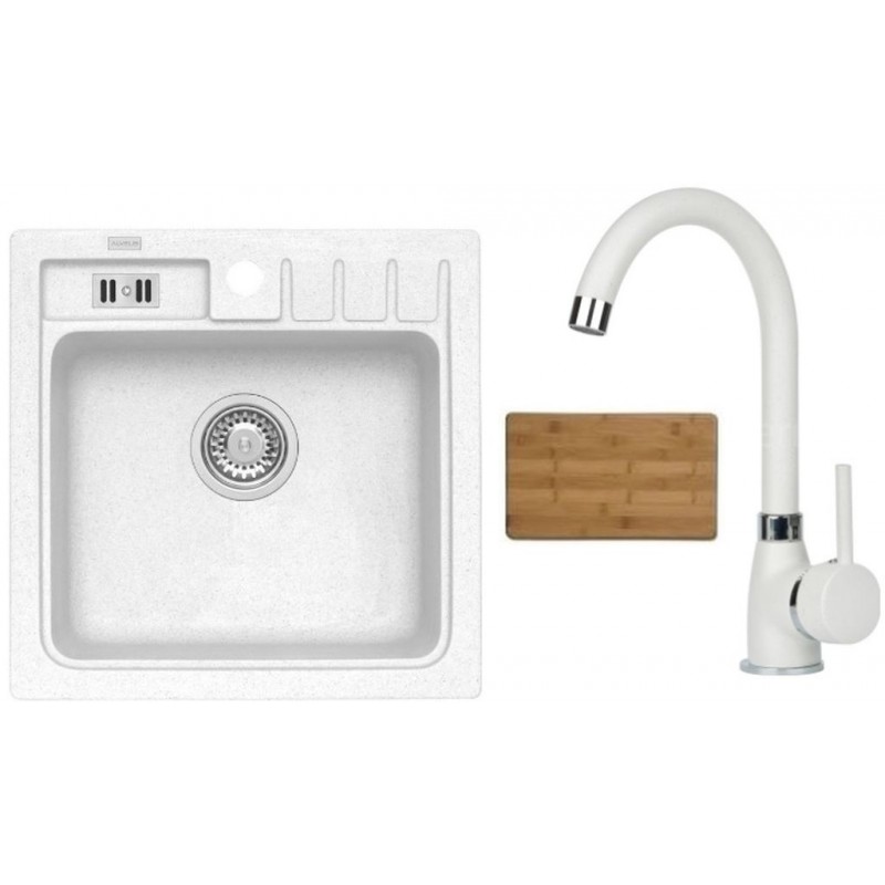 ALVEUS set drez Niagara 20 white + batérie Betty white + doska na krájanie ZadarmoRozmery drezu: 465 x 465 mm