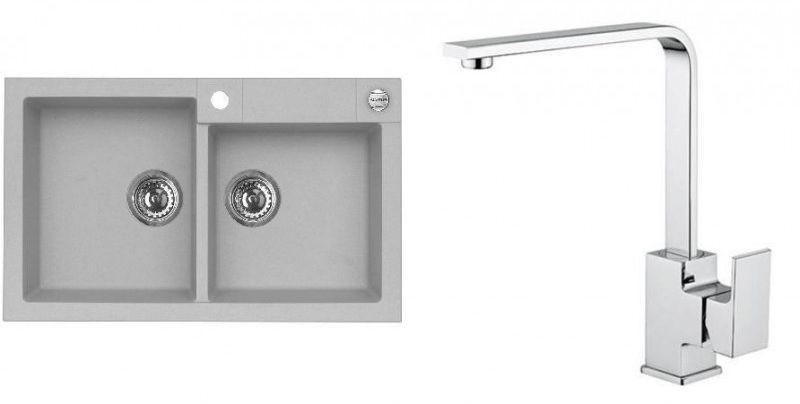 - Magyarországra történő szállítás ALVEUS ROCK 90 gránit mosogató szett 780x480 mm + RENO csaptelep, beton