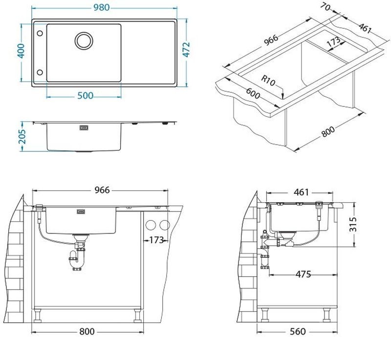 - Rozmer drezovej nádoby: 500 x 400 x 205 mm