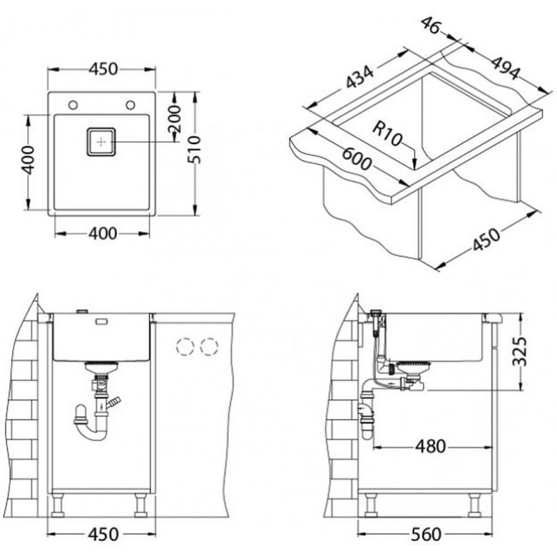- Rozmer drezovej nádoby: 400 x 400 x 200 mm