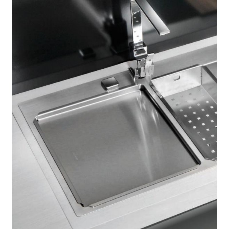 virtuálne jednotnú pracovné plochu.Tenký, takmer neviditeľný okraj drezu umožňuje rýchle a jednoduché čistenie, pričom inštalácia je veľmi jednoduchá, vhodná do bežných pracovných dosiek.