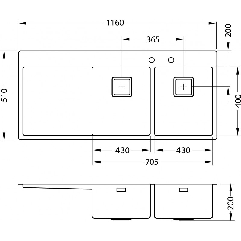 ALVEUS Stylux 70 F kuchynský drez nerez, 1160 x 510 mm, pravý 1084421Plne vstavaný drez - F *