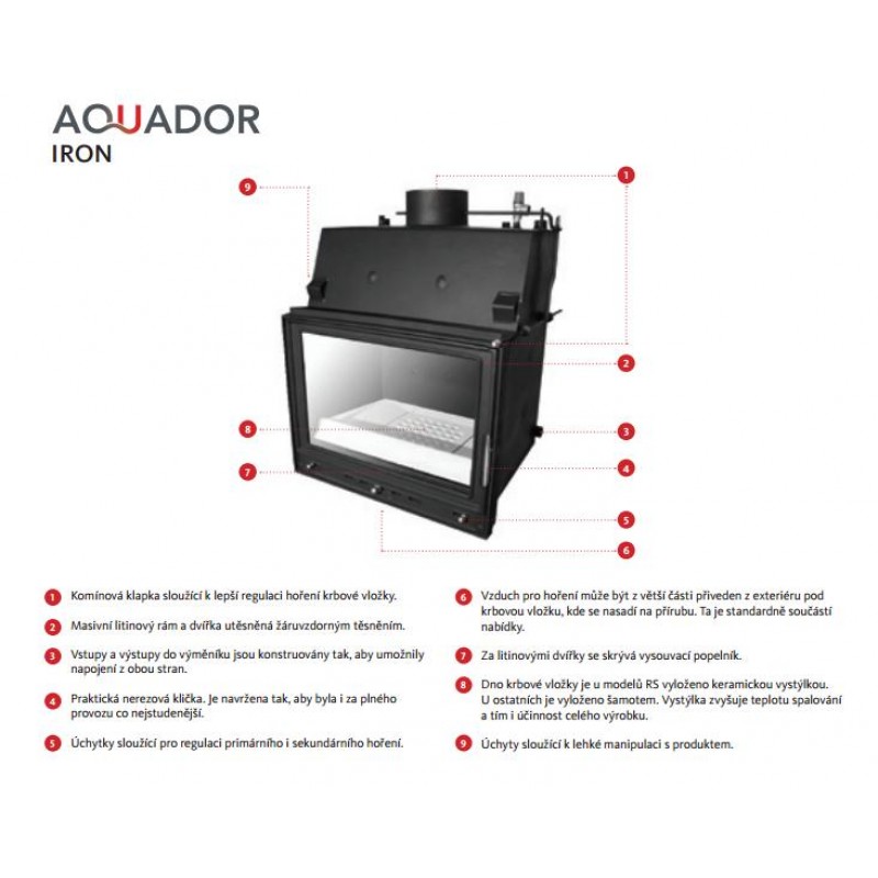 Krbové vložky pôvodnej série Aquador iron sú doteraz vyrábané v mnohatisícových sériách a sú preverené už dvoma desaťročiami. Ich dvierka a fasáda sú vyrobené z kvalitnej a robustnej nemeckej liatiny. Krbové vložky Iron majú celý rad výhod: