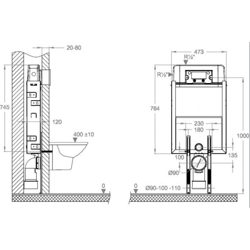 Podomietková nádržka pre zamurovanie (bez tlačidla).Nádržka (3/6 L) je lisovaná z jedného kusu až po úroveň hladiny vody a je vystužená proti deformácii.