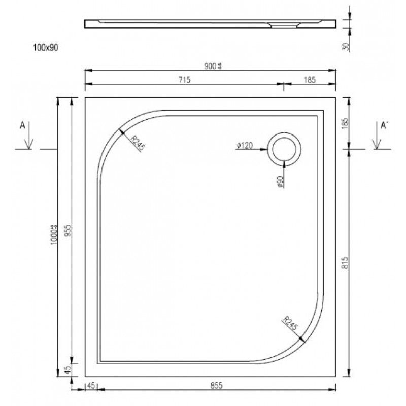 ARTTEC STONE 1090S - sprchová vanička obdĺžniková, liaty mramor PAN00852- Rozmer: 100x90x3 cm