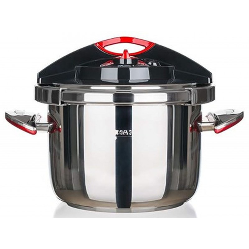 Tlakový hrniec Impress 5 l je vyrobený z prvotriednej nehrdzavejúcej ocele 18/10 a veľmi odolného plastu. Jednoduchá manipulácia otvorenie veka pomocou otočného knobov. Je vybavený silným sendvičovým dnom. Pokrievka má pracovný ventil, poistný ventil a silikónové tesnenie. Hrniec je určený pre všetky typy sporákov. Hrniec má moderné farebné prvky na uzáveru a rukovätiach v červenej farbe, sendvičové dno 1 cm, hrúbka steny 0,6 mm.Technické parametre produktu: l