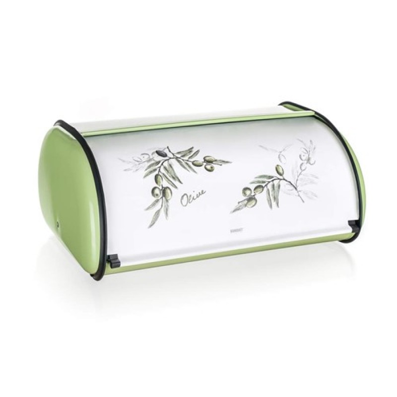 Chlebník Olives, dekor + sv.zelená farba, rozmery: 43,5 x 27,5 x 18,5 cm.Dĺžka (cm): 43,5