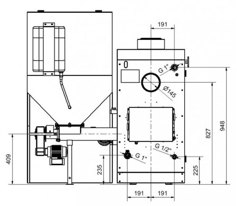 - Zásobník paliva umiestnený na pravej strane kotla pri čelnom pohľade