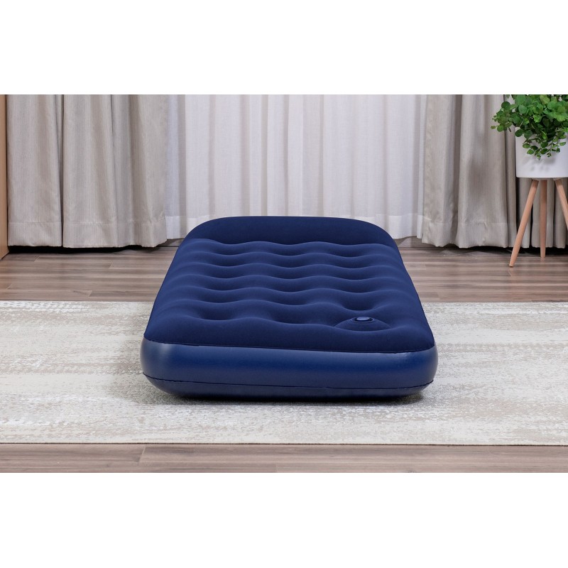 Nafukovací matrac so vstavanou nožnou pumpou je určený na použitie jednou osobou. Vonkajšia vrstva je pokrytá velúrovým materiálom. Súčasťou je ventil, ktorý umožňuje rýchle vypustenie vzduchu.