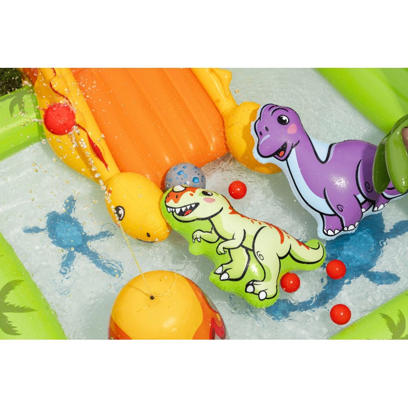 Vyrobené z odolného PVC, hracie centrum je stabilné, odolné a vhodné pre deti od 2 rokov. Pojme až 3 deti naraz a kombinuje zábavu vo vode s kreatívnymi hernými prvkami a motívom dinosaurov.