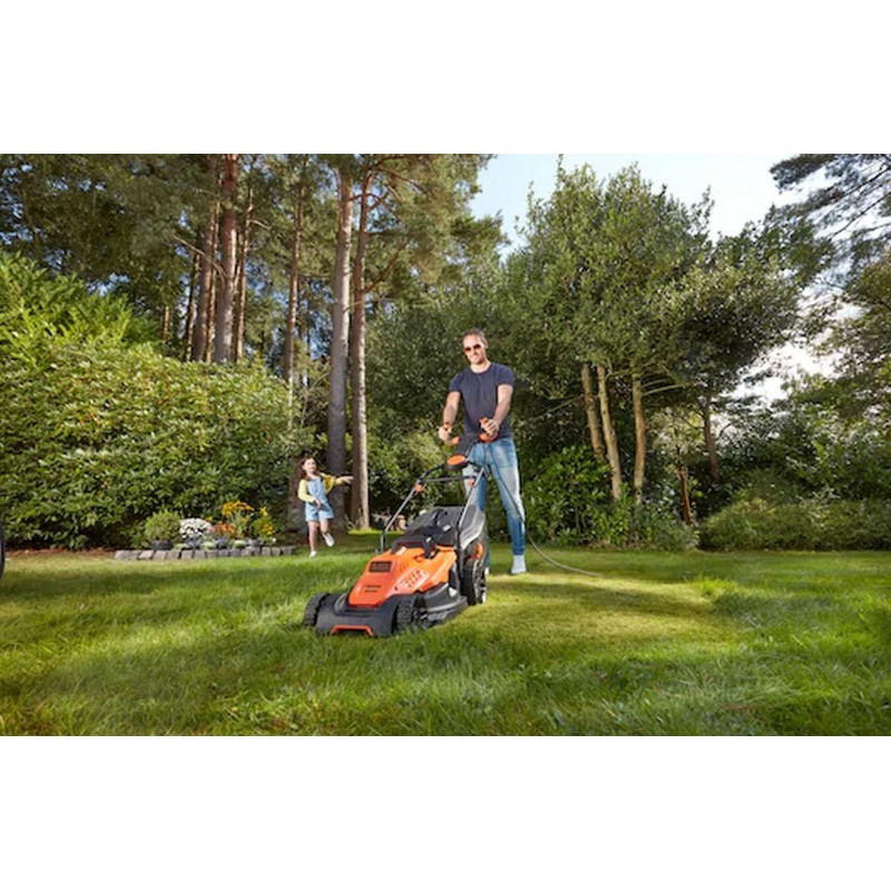 Black & Decker BEMW481ES-QS je výkonná elektrická kosačka s ergonomickým dizajnom pre jednoduché ovládanie a vysokú účinnosť kosenia. Vďaka inovatívnemu systému EasySteer™ je manipulácia okolo prekážok jednoduchá a pohyb zľava doprava pohodlný. Funkcia Easy Start umožňuje jednoduché zapnutie a vypnutie tlačidlom. Výkonná čepeľ zabezpečuje kvalitné kosenie a až o 80 % lepší zber trávy. Veľký zberný kôš s indikátorom plnosti umožňuje kosiť bez častého vysýpania, pričom 6 nastaviteľných výšok kosenia poskytuje maximálnu flexibilitu.