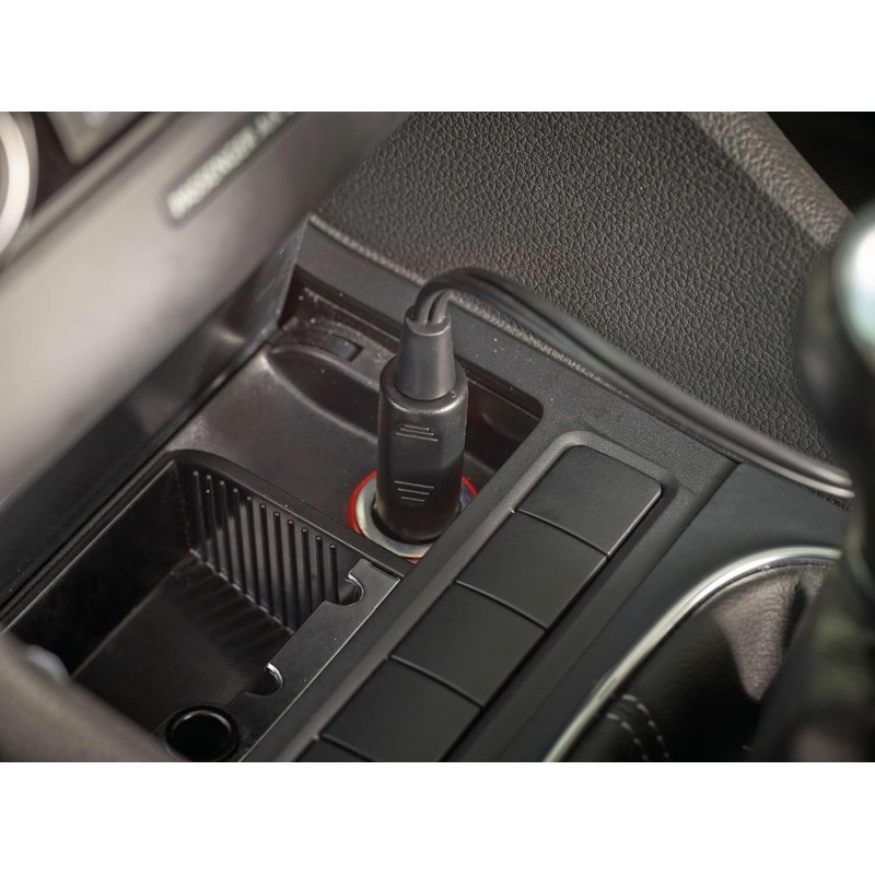 Cyklónová technológia odvádza prach od filtra, čím zaisťuje stálu saciu silu. Nádoba s objemom 440 ml má bočnú klapku pre hygienické vysypanie prachu. Vysávač sa napája cez zásuvku zapaľovača 12 V a 5 m kábel umožňuje pohodlný úklid celého interiéru.