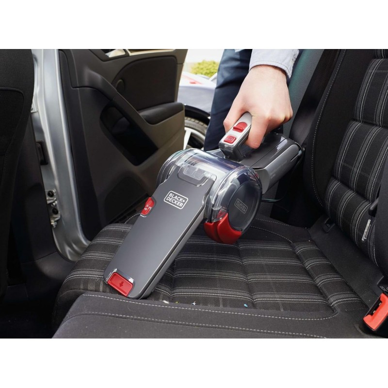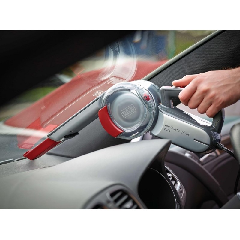 Black & Decker PV1200AV-XJ je ručný vysávač špeciálne navrhnutý pre automobily s vysokým výkonom a ergonomickým dizajnom. Vďaka prúdeniu vzduchu 17,6 dm3/s a otočnej hlave 200° ľahko vyčistí všetky ťažko dostupné miesta vo vozidle, vrátane priestoru pod sedadlami.