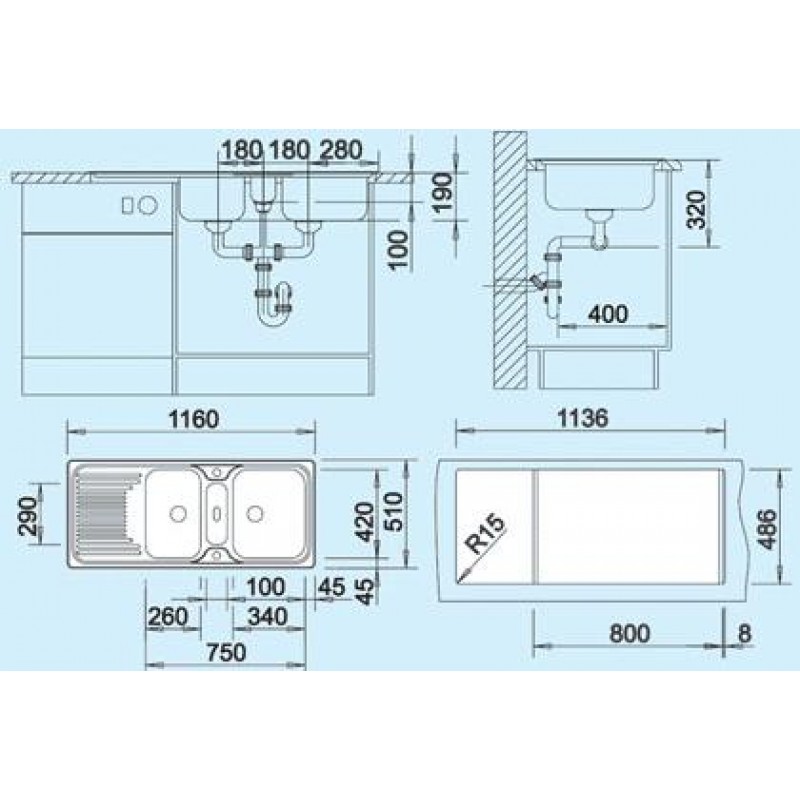 Rozmer drezovej nádoby: 340 x 420 mm / 260 x 420 mm