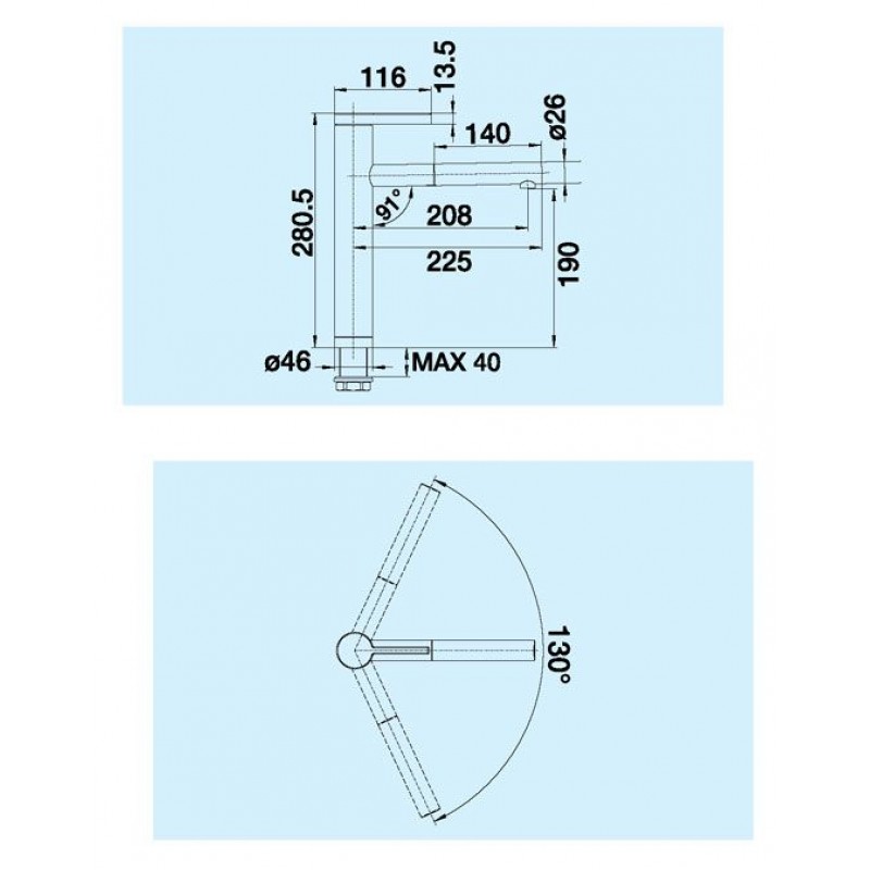 otočné rameno výtoku 130 °