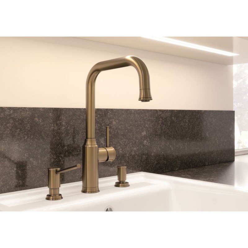- Systémové riešenie v designovo zodpovedajúcim dávkovačom saponátu a ovládacím tiahlom výpuste