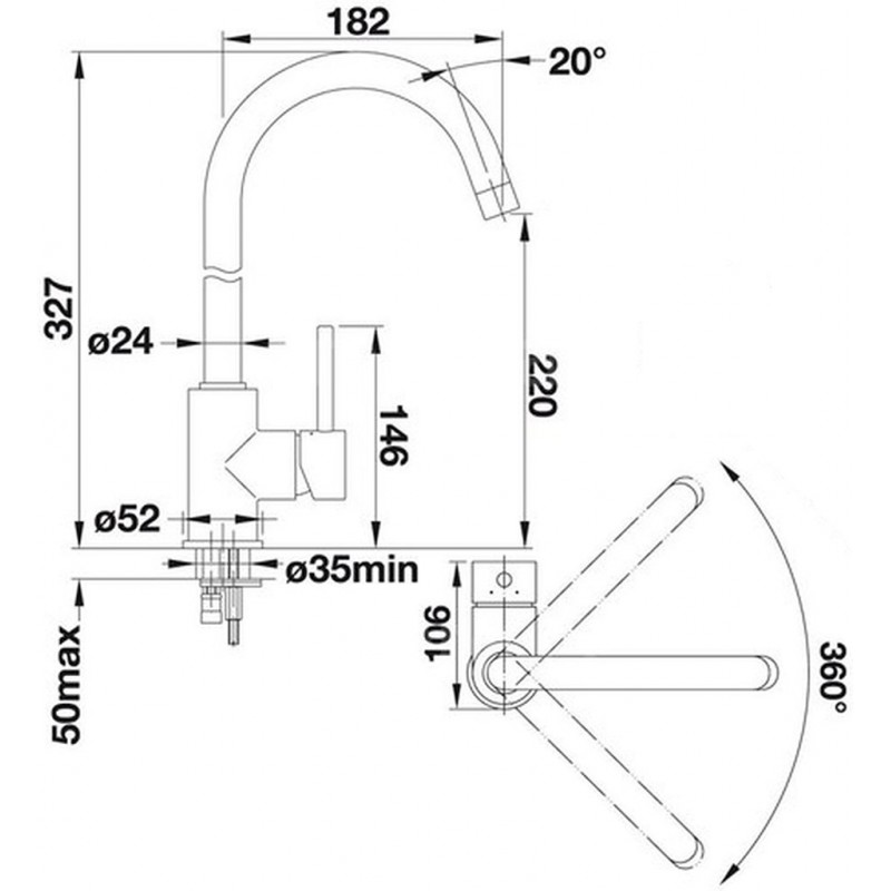 - Rozšírený akčný rádius: o 360 ° otáčitelný odtok