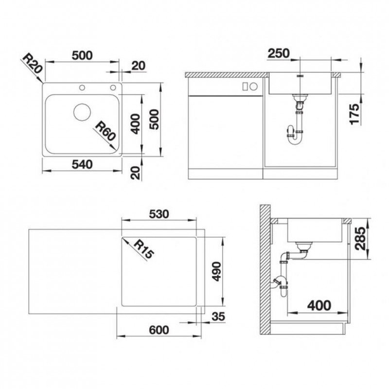 BLANCO SUPRA 500 IF / A Nerez kartáčovaný obojstranné prevedenie s excentrom 523362Jednodrez - obojstranný s excentrom - plochý okraj IF / A pre zabudovanie do roviny alebo zhora